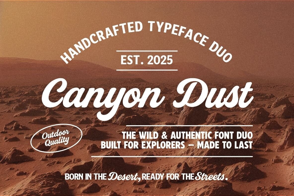 Discover Canyon Dust Font Duo – a blend of rustic charm and vintage class. Unlock its versatility for branding, logos, and more. Elevate your designs today.