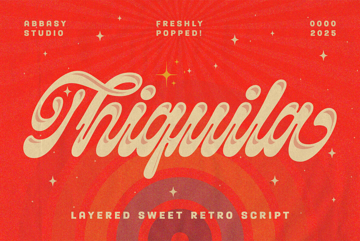 Discover Thiquila, a retro script typeface bringing ’70s & ’80s funk to modern design. Perfect for posters, logos, and more. Explore its charm.