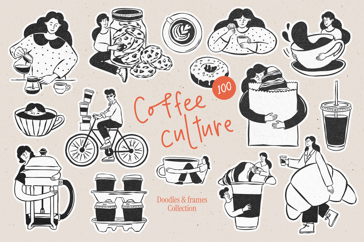 Get creative with the whimsical Coffee Doodle Collection at YouWorkForThem. Perfect for menus, planners, and more. Download now!