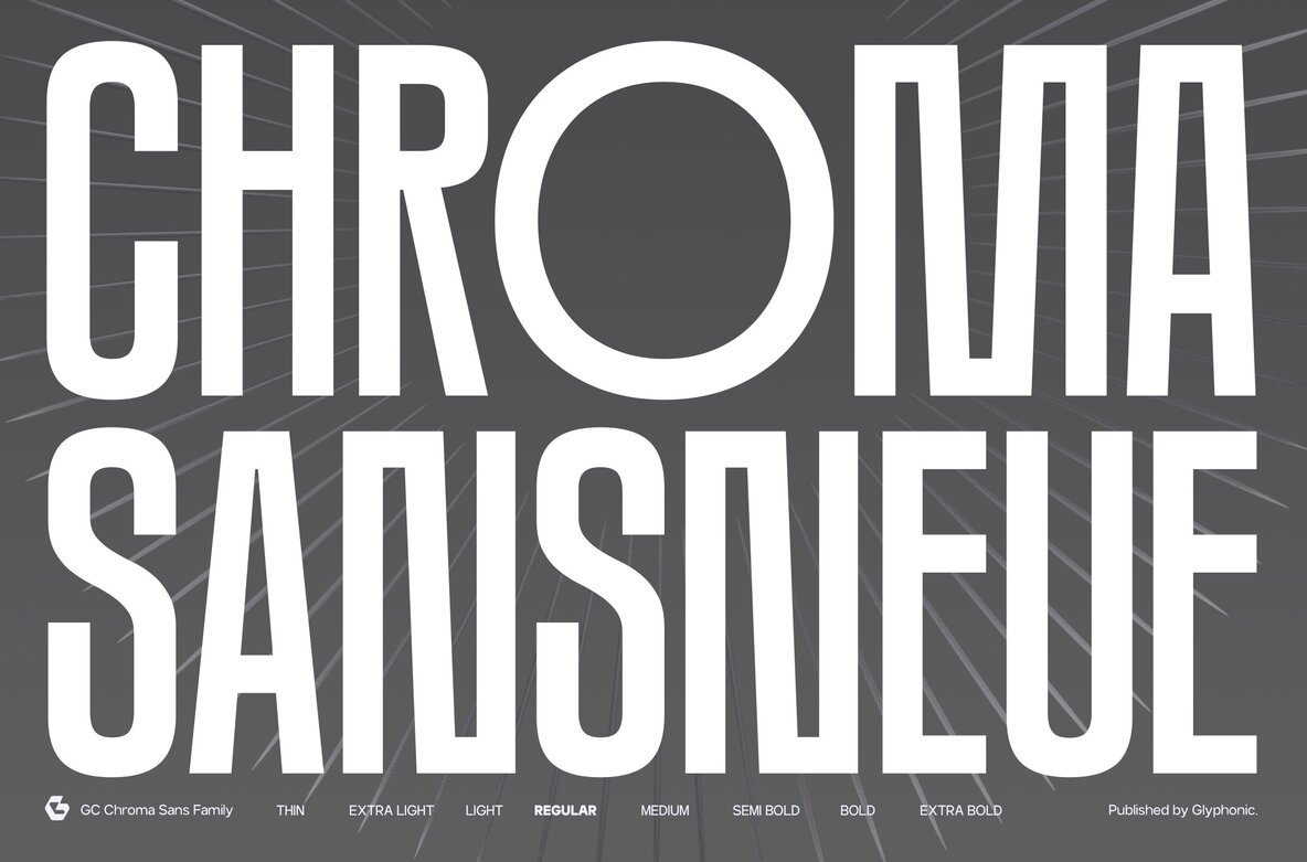 Inject versatility and modern elegance into your designs with GC Chroma, a condensed typeface for bold layouts and branding. Stand out now!